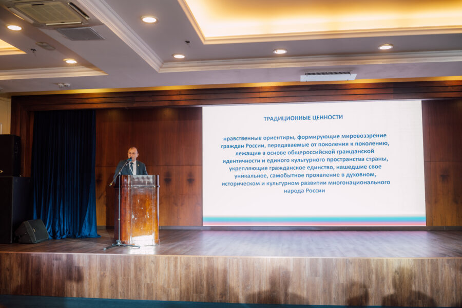 Воспитание в духе традиционных ценностей должно проводится в понятной, доступной форме для молодежи. Это сложные вопросы, которые требуют внимательной работы нашего педагогического состава. О ценностной основе российской идентичности рассказал директор Центра укрепления традиционных духовно-нравственных ценностей Ибрагимов Ибрагим Джавпарович.