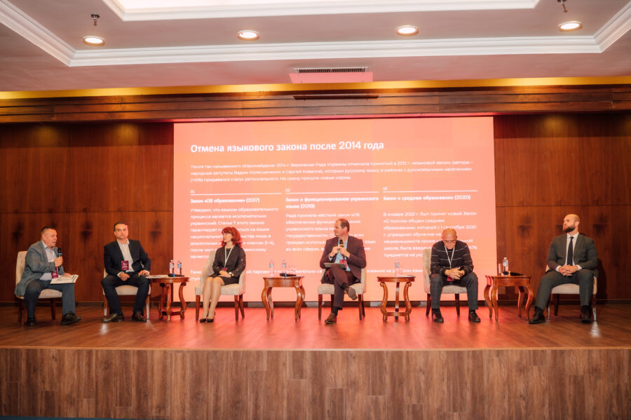 О том, какие методы и подходы могут быть действенными в данной ситуации, поделились научный сотрудник Центра этнополитической реабилитации ДонГУ Мирослав Руденко, директор Координационного центра по вопросам формирования у молодежи активной гражданской позиции, предупреждения межнациональных и межконфессиональных конфликтов, противодействия идеологии терроризма и профилактики экстремизма КФУ им. В.И. Вернадского Елена Губанова , заведующий кафедрой русского языка ДонГУ Вячеслав Теркулов, эксперт Координационного центра по вопросам формирования у молодежи активной гражданской позиции, предупреждения межнациональных и межконфессиональных конфликтов, противодействия идеологии терроризма и профилактики экстремизма Запорожской области Анатолий Половинец.